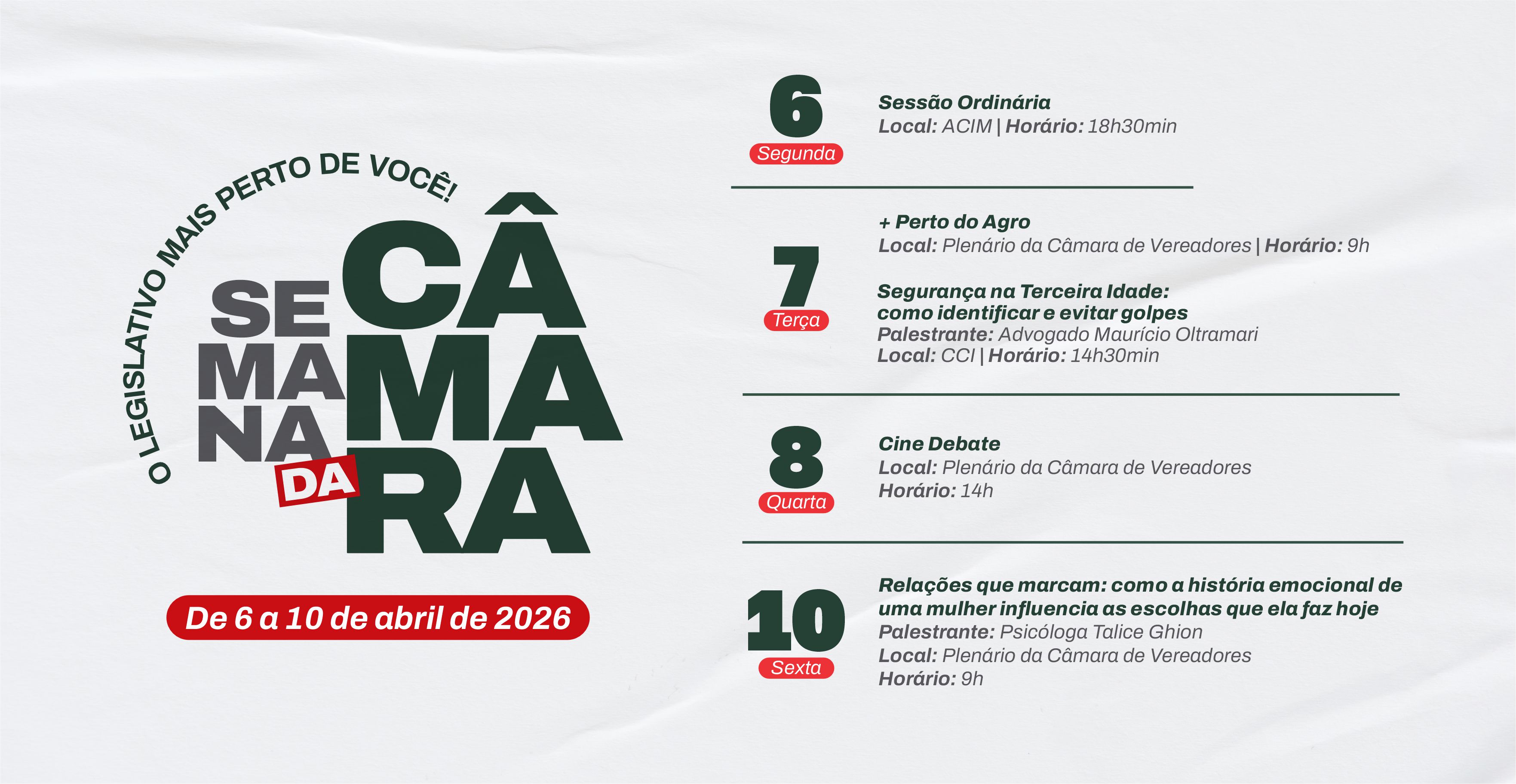 Pensando em ampliar o diálogo com diferentes segmentos da sociedade, a Câmara de Vereadores de Marau promove, entre os dias 6 e 10 de abril, a “Semana...