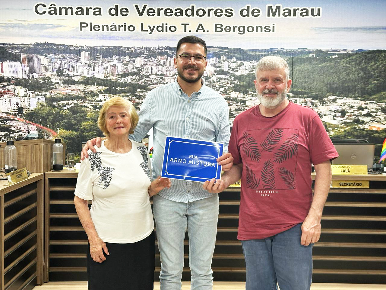 Foi aprovado por unanimidade na sessão desta segunda-feira (15), o Projeto de Lei que denomina de Rua Arno Mistura a Rua “D” do Loteamento São Gabriel. A proposição é de autoria do presidente da Casa, Vaguinho Daré.