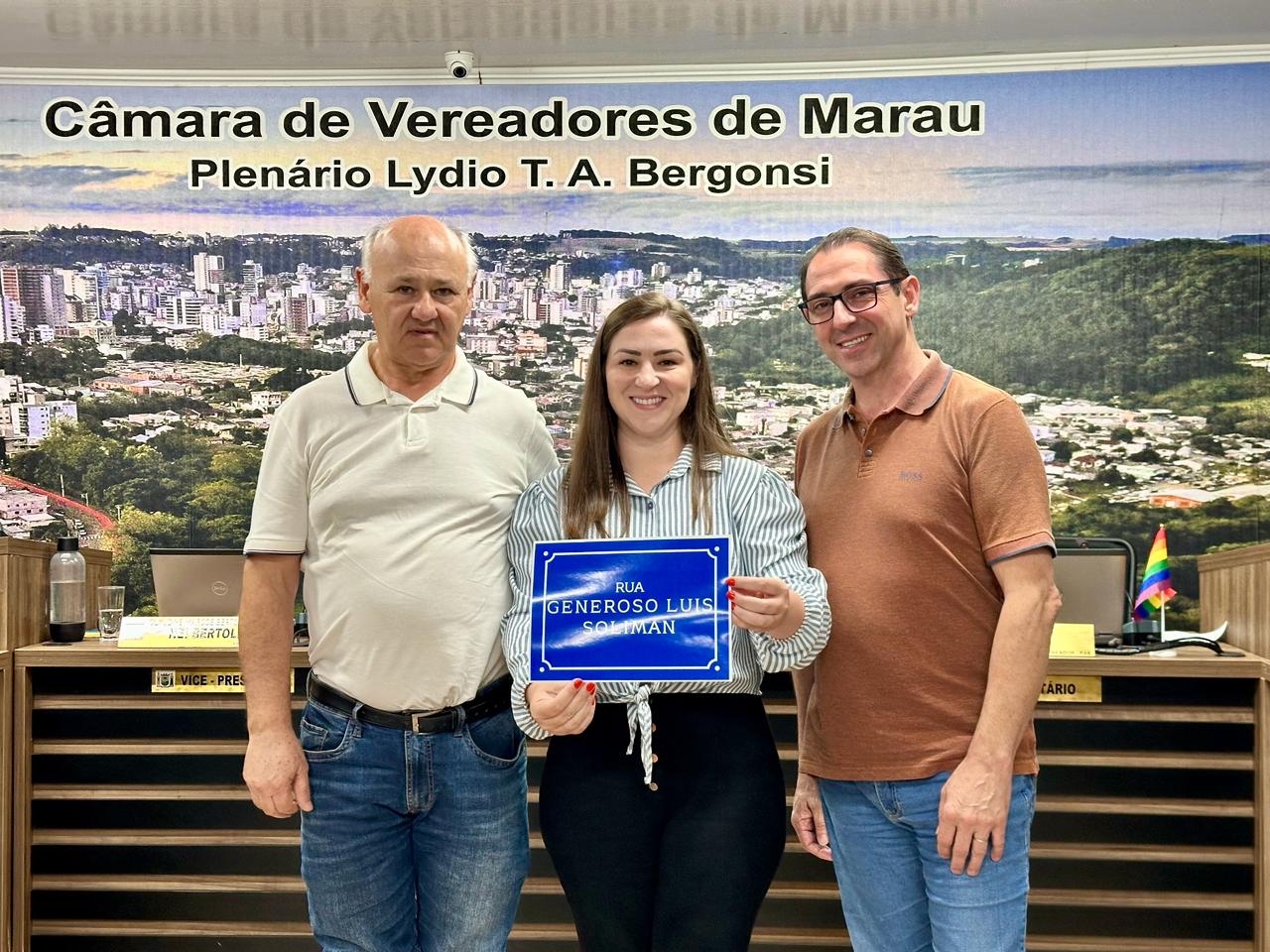 Na noite de ontem (15), foi aprovado Projeto de Lei que denomina de Rua Generoso Luis Soliman o Beco “B” Progresso, do Bairro Progresso, que inicia na Rua Júlio de Castilhos e segue sentido Leste. De iniciativa da vereadora Josiane Bedin, proposição obteve 8 votos favoráveis. Familiares estiveram na Câmara de Vereadores acompanhando a votação.